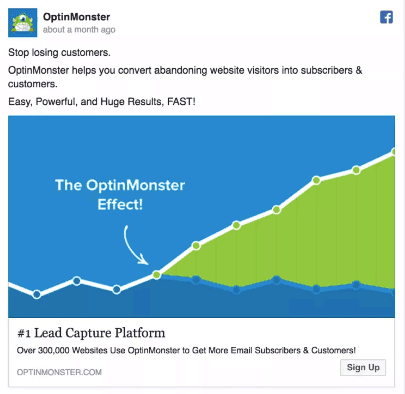 - Ein Software-Hersteller für „Optin“ (Einschreibung in deinen Newsletter) erzeugt Aufmerksamkeit durch eine eine Erfolgs-Grafik (vorher/nachher)
