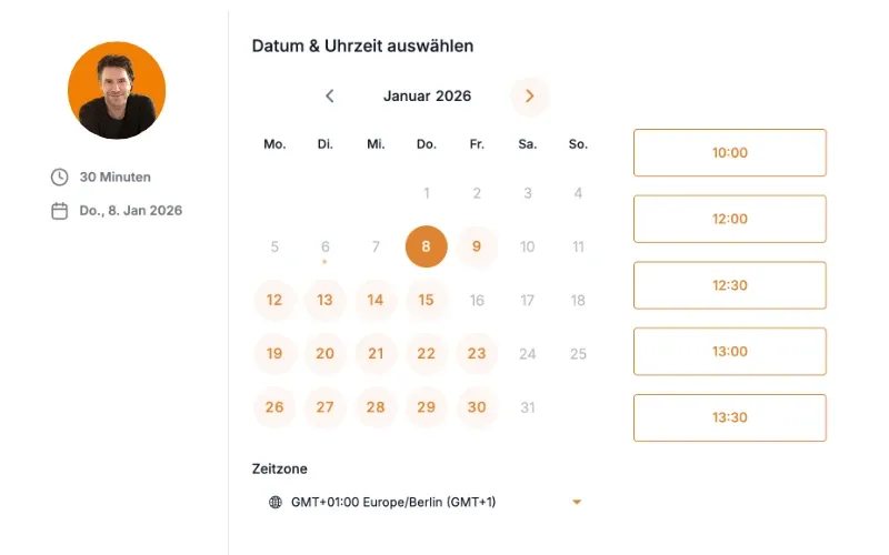Erstelle dein Buchungskalender, z.B. für Beratungsgespräche oder Gruppen-Meetings.