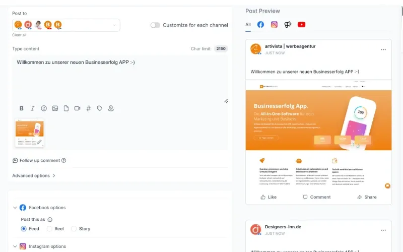 ✔ Facebook, Instagram, X, LinkedIn