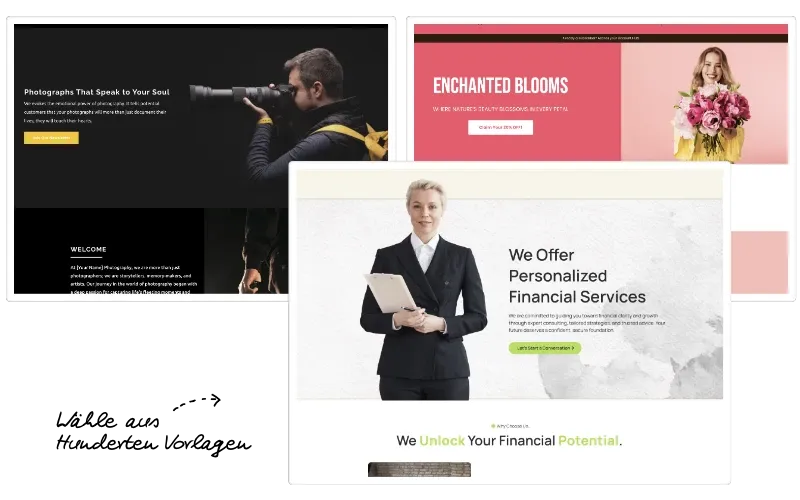 Baue deine Website per Drag & Drop, mit einer Vorlage – oder mit KI.