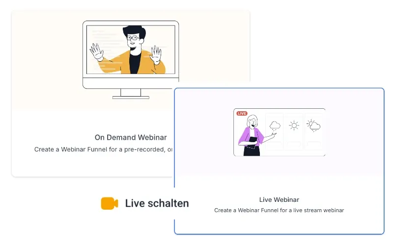 Gewinne Kunden mit On-Demand-Webinaren oder streame in „Live“ auf allen Kanälen.