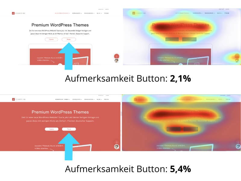 Finde im Vorfeld heraus, ob dein Call-To-Action wahrgenommen wird. Es macht einen großen Unterschied, ob ein Kaufbutton von 9% oder 1% der Besucher gesehen wird!
